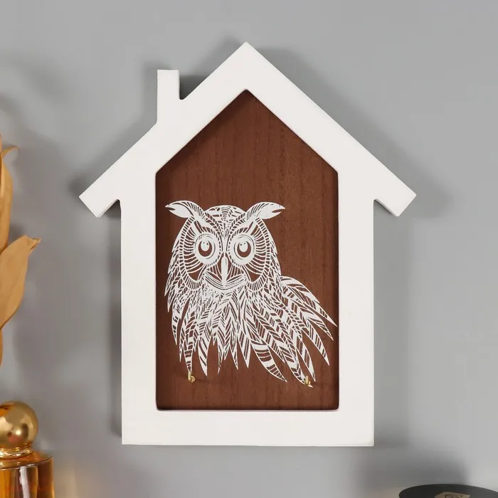 Настенные крючки декоративные «Домик с филином», дерево, 24×19.5×2 см