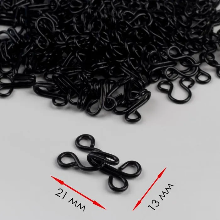 Металлические крючки позволят вам создать потайную застёжку на юбке, платье, корсете или нижнем белье. Они надёжно соединяют края изделий, легко застёгиваются и расстёгиваются. Каждая из двух деталей крючка пришивается обычной нитью и имеет по две точки крепления, чтобы застёжка не оторвалась в самый неподходящий момент.