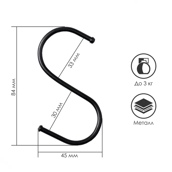 Крючок S-образный, d=3.2 мм, L=8 см, чёрный — Характеристики