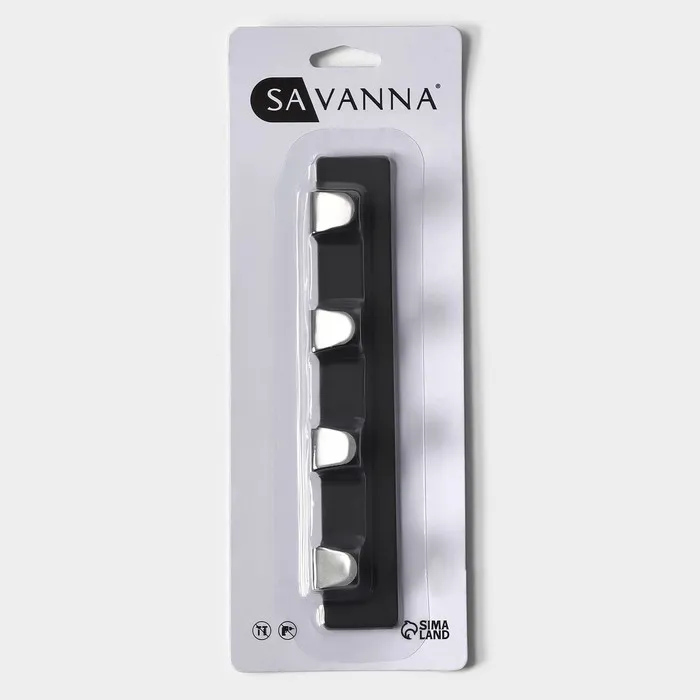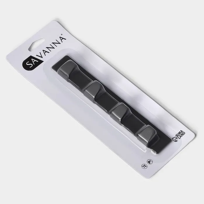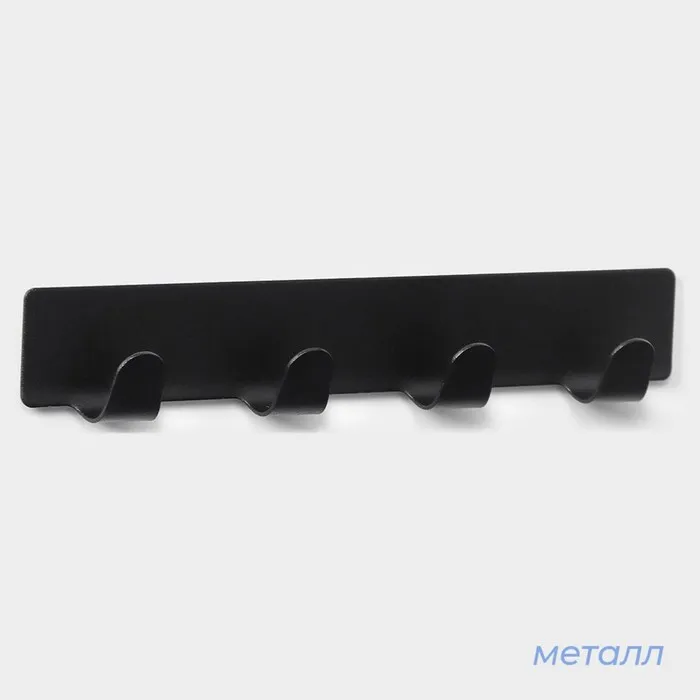 Крючок самоклеящийся SAVANNA Black, планка, металл, 4 крючка, 16×2×2,5 см, цвет чёрный — Характеристики