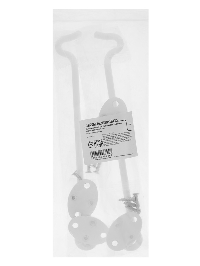 Крючок ветровой LOCKLAND KV001, L=200 мм, нержавеющая сталь, белый, 2 шт. — Характеристики