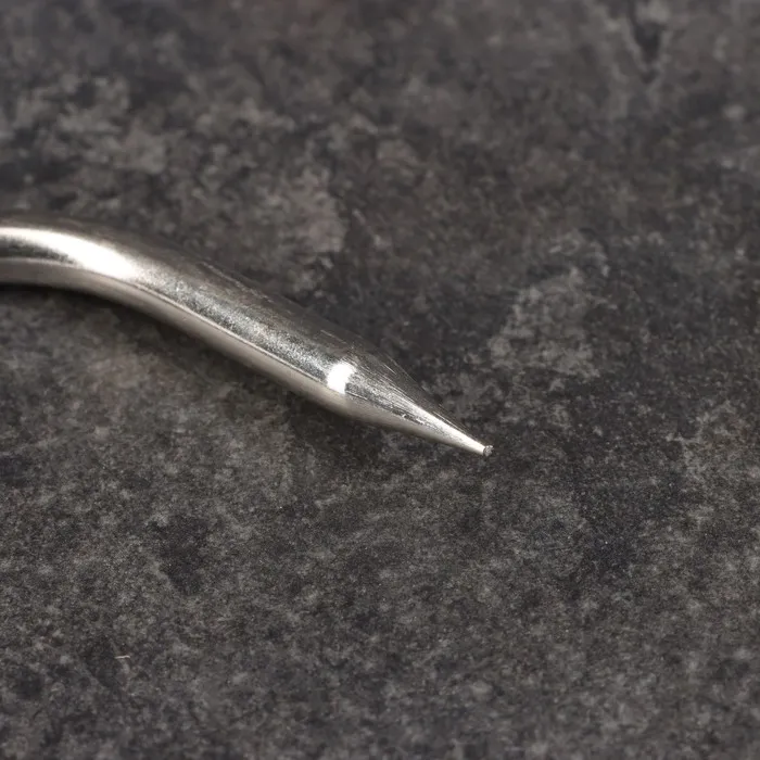 Острие позволяет легко нанизывать большие куски мяса или целые тушки птиц, а также другие продукты для последующего запекания,копчения или жарки. Специальная форма крюка предотвращает прокручивание или сползание продуктов, обеспечивая равномерное приготовление и сохранение формы.
