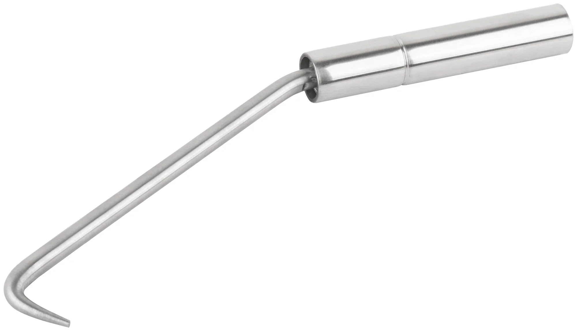 Крюк изготовлен из нержавеющей стали, что гарантирует его долговечность и стойкость к коррозии. Этот инструмент имеет длину 250 мм, что обеспечивает удобство в работе и позволяет использовать его в различных условиях.