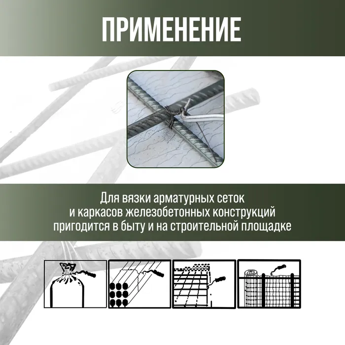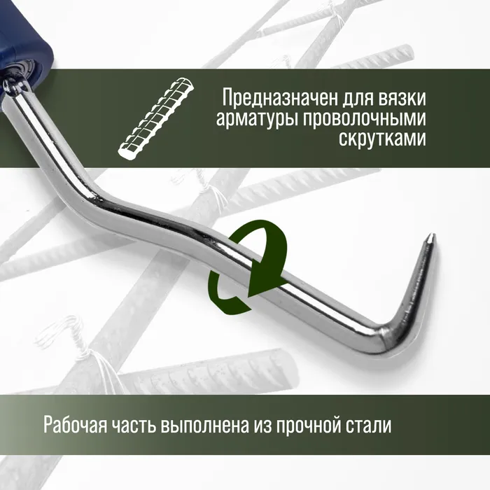 Крюк ТУНДРА — инструмент для быстрой и удобной вязки арматуры. Такое приспособление применяется в строительном деле при производстве сеток и каркасов для железобетонных конструкций.
