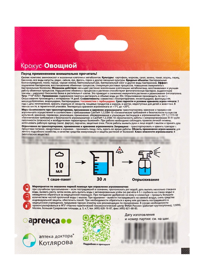 Крокус Овощной 10 мл. саше-пакет — Характеристики