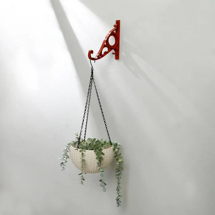 Кронштейн поможет закрепить на стене цветы в подвесных кашпо. Настенный кронштейн для подвесных горшков станет отличным решением для тех, кто хочет украсить интерьер или экстерьер своего дома растениями. Выполненный из пластика, он удачно впишется в любой стиль благодаря своему универсальному цвету и лаконичному дизайну. Этот крепкий помощник позволит разместить любимые растения на стене, экономя пространство и придавая пространству свежесть и уют.