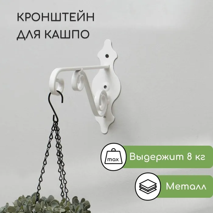 Кронштейн для кашпо, кованый, 18 см, металл, белый
