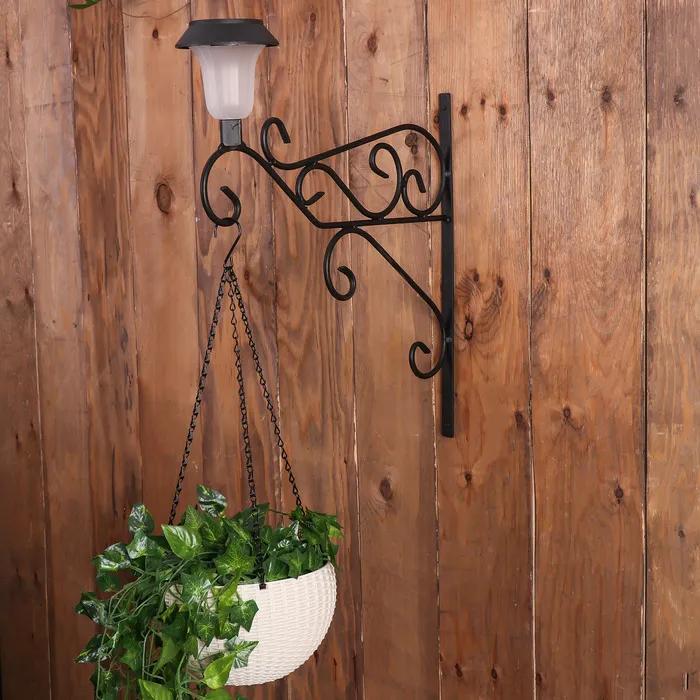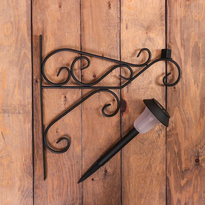 Кронштейн для кашпо, кованый, с фонарём, 50 см, металл, чёрный, «Узор» — Характеристики
