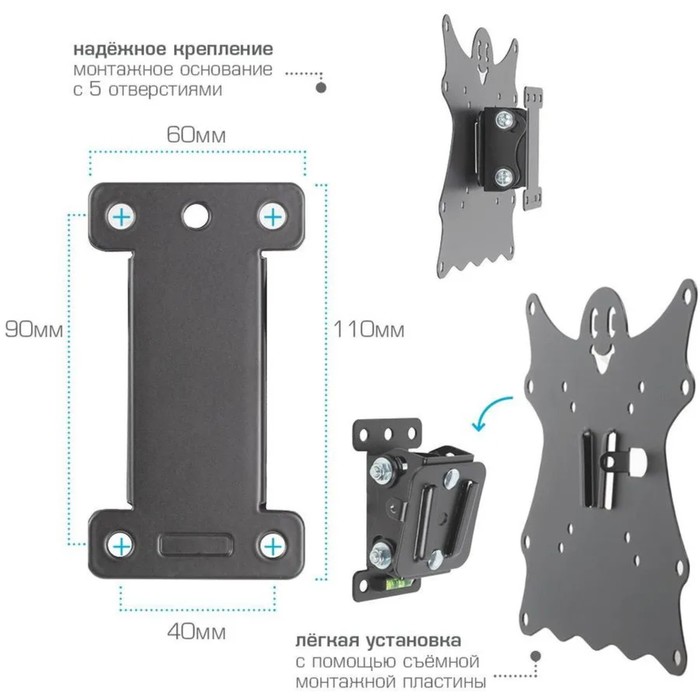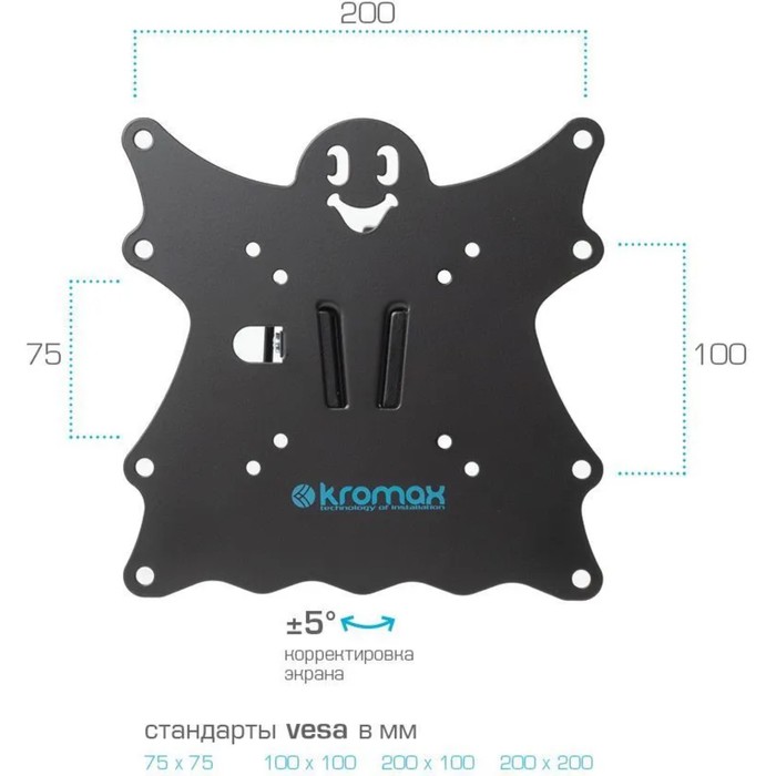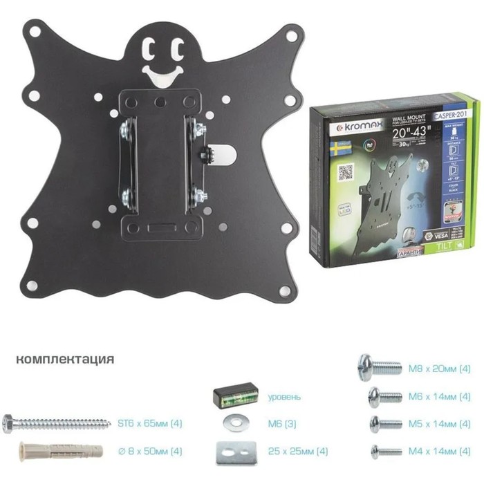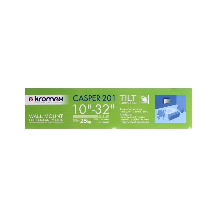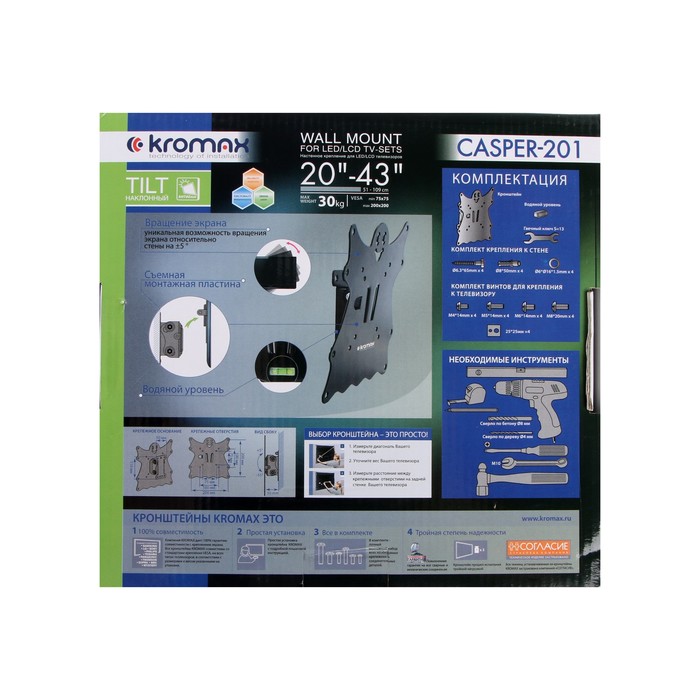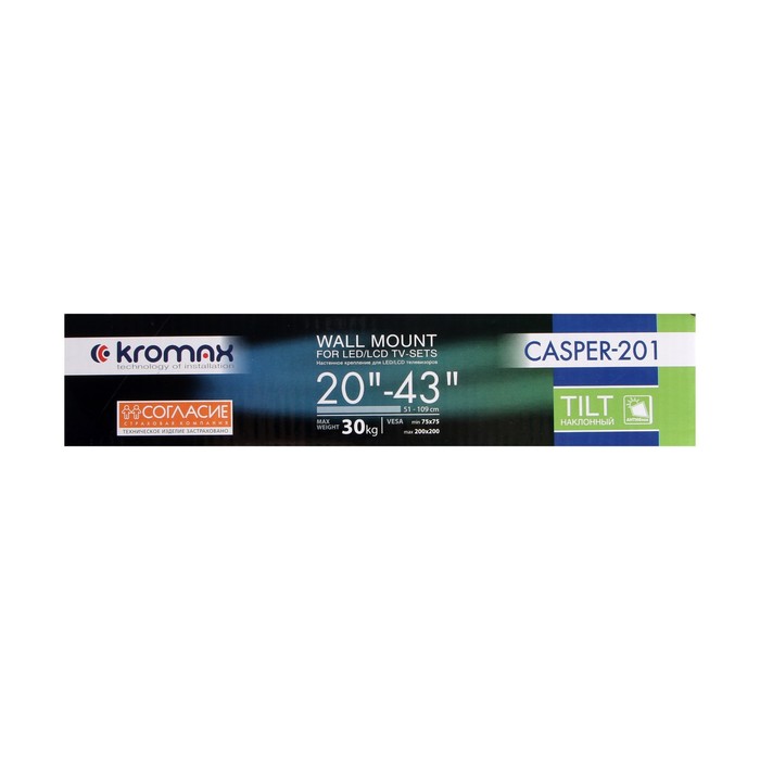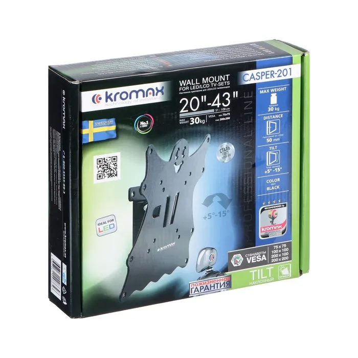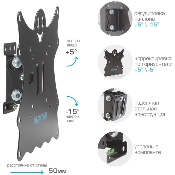 Кронштейн Kromax CASPER-201, для ТВ, наклонный, 20-43", до 30 кг, 50 мм от стены, черный — Характеристики