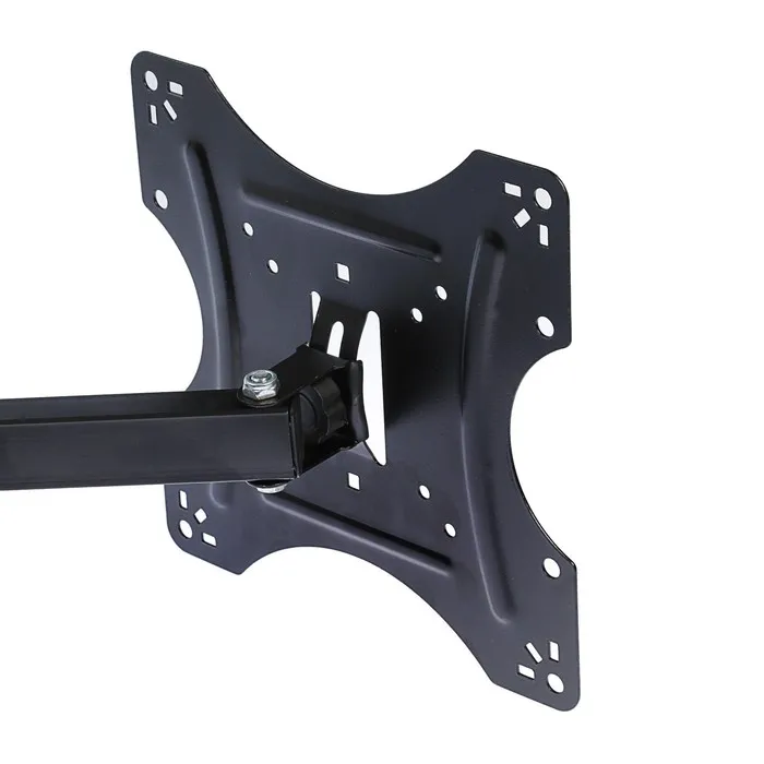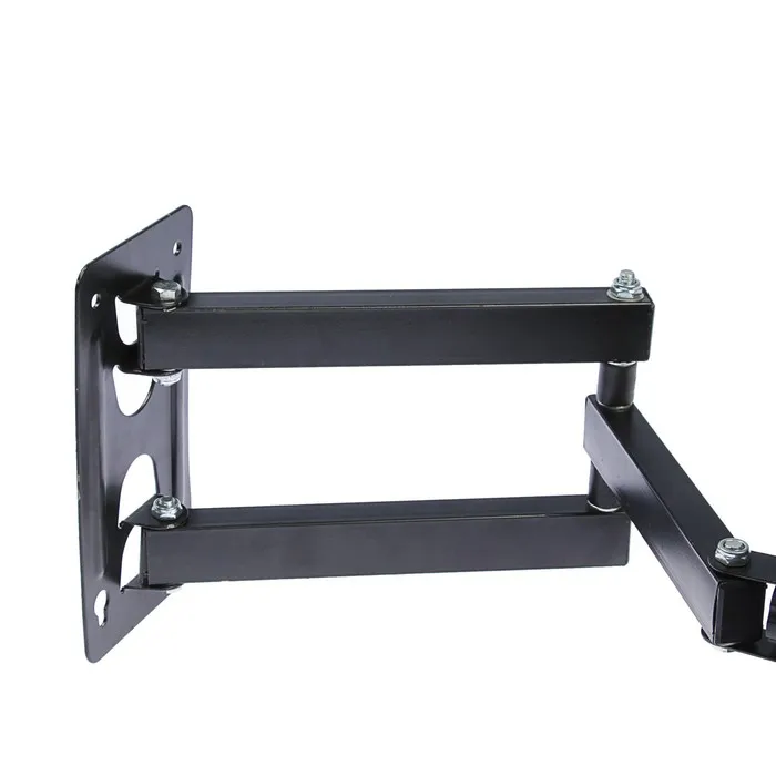С распространением жидкокристаллических экранов телевизоры стали плоскими. Благодаря малым габаритам они не требуют подставок в виде массивных тумбочек. Прикрепите дисплей к стене напротив кровати или кухонного стола и сделайте вашу квартиру просторнее. Данный кронштейн подходит под экраны с диагональю до 42 дюймов и регулируется по направлениям поворота и наклона. Смотрите телепередачи из любой точки в комнате.В комплект входят необходимые комплектующие для сборки и крепления.