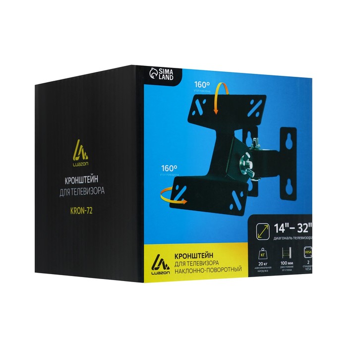 Кронштейн Luazon KrON-72, для ТВ, наклонно-поворотный, 14-32", 100 мм от стены, чёрный — Характеристики