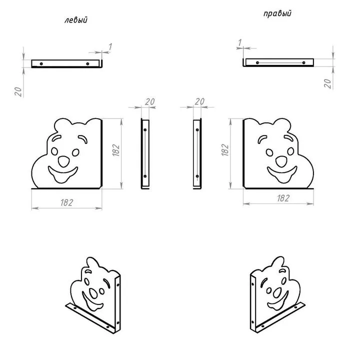 Кронштейн «Мишка» 180×180 мм, белый,10 шт. — Характеристики