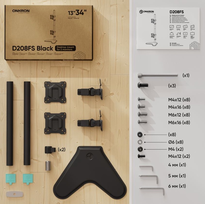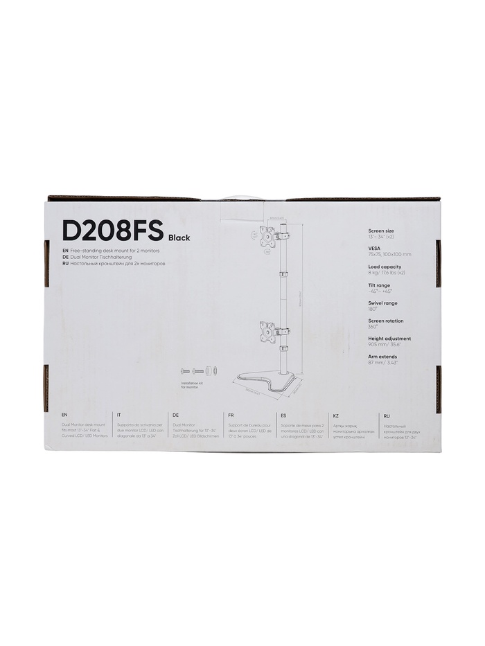 Кронштейн Onkron D208FS-B, для двух мониторов, 13"-34", до 16 кг, настольный, чёрный — Характеристики