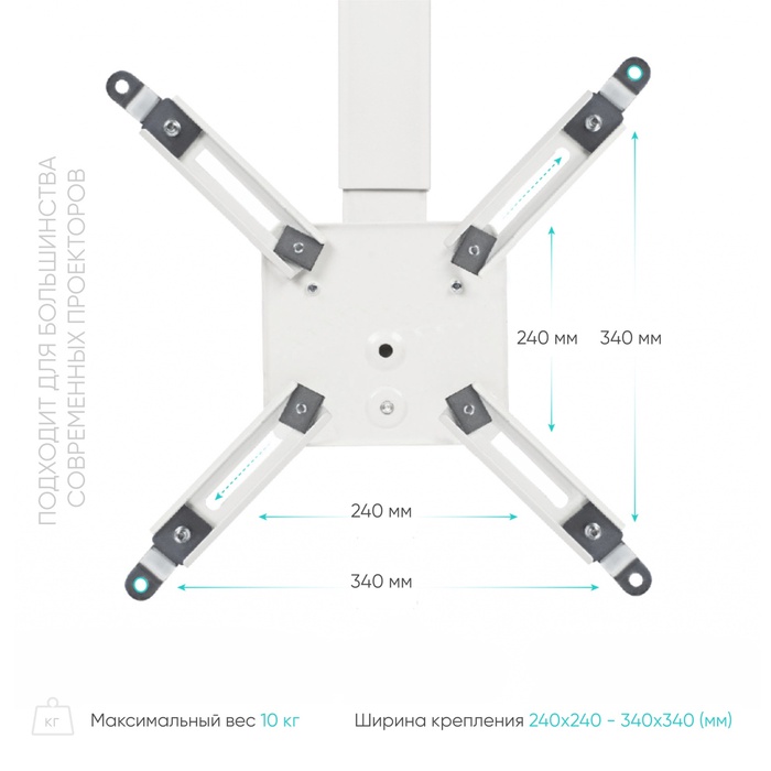 Кронштейн Onkron K5A, для проекторов, потолочно-настенный, до 10 кг, белый — Характеристики