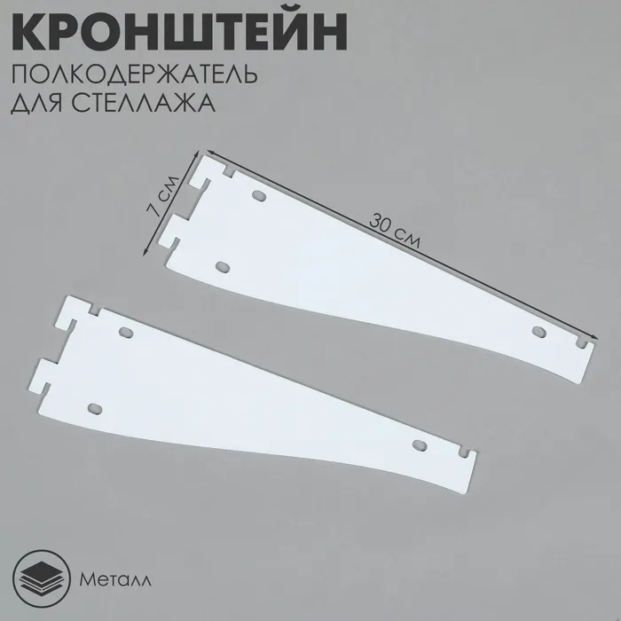 Кронштейн-полкодержатель для стеллажа, 30 см, для полки с перфорацией, цвет белый