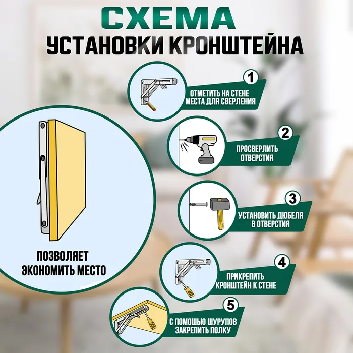 Кронштейн складной для столов и полок ТУНДРА, 2 шт., длина 250 мм, нержавеющая сталь — Характеристики