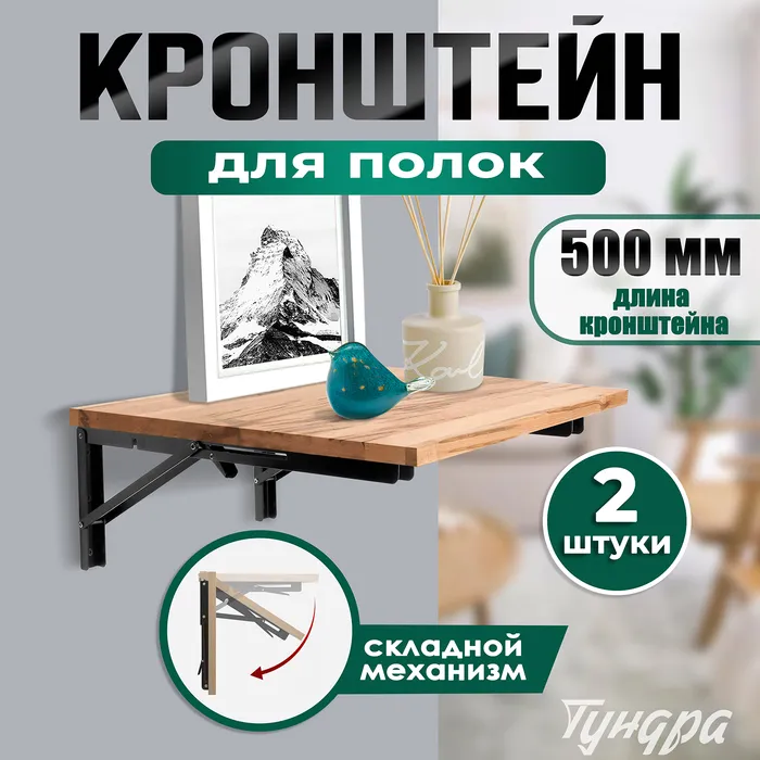 Кронштейн складной для столов и полок ТУНДРА, 2 шт., длина 500 мм, сталь черный — Характеристики