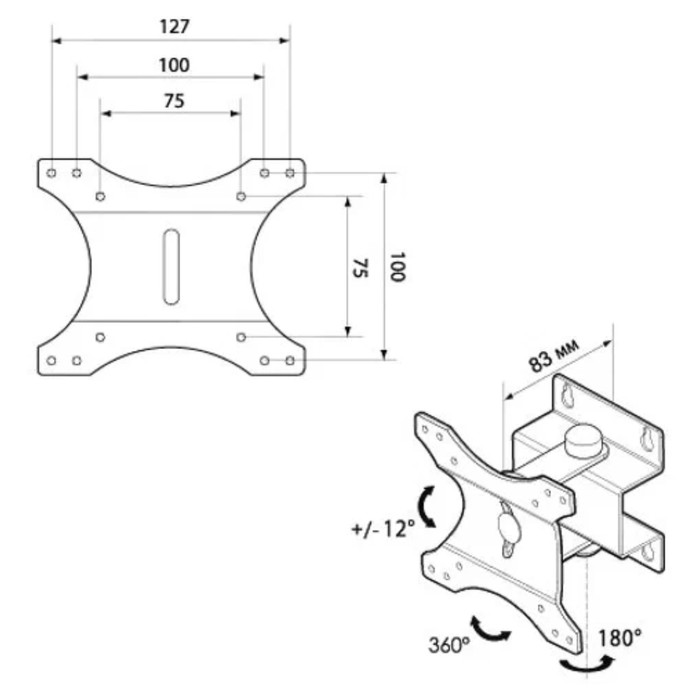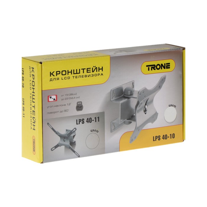 Кронштейн Trone LPS 40-10, для ТВ, наклонно-пов, 15"-23", до 25 кг, 83 мм, белый — Характеристики