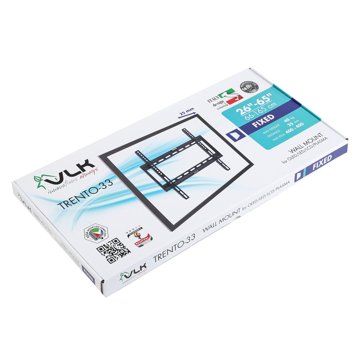 Кронштейн VLK TRENTO-33, для ТВ, фиксированный, 26-65", 26 мм от стены, черный — Характеристики