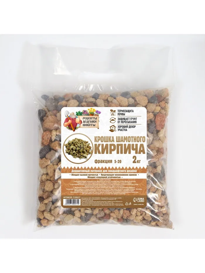 Крошка шамотного кирпича "Рецепты дедушки Никиты", фр 5-20, 2 кг — Характеристики