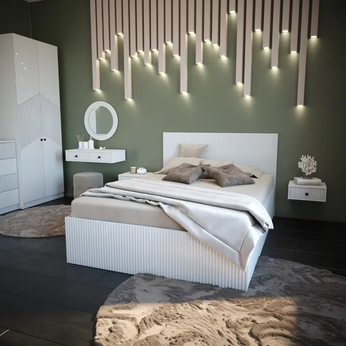 - Материал корпуса - МДФ, толщиной 16мм в пленке ПВХ, Изголовье и изножье - МДФ толщиной 19мм с фрезеровкой в пленке ПВХ.