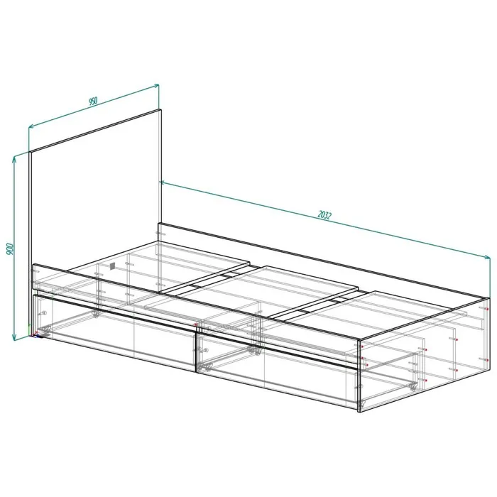 Кровать 900 с ящиками и основанием Мадера, с/м 900х2000, Белый — Характеристики