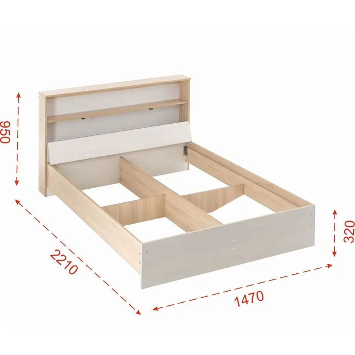 Кровать «Бася-1», 1400×2000 мм, дуб сонома/ясень анкор светлый — Характеристики