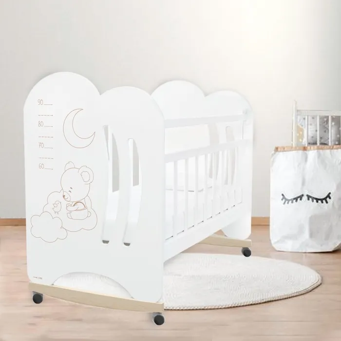 Красивый дизайн, практичность и передовые технологии, которые помогут наилучшим образом организовать спальное место для малыша и подарить ему спокойный сон и полноценный отдых. Кроватка изготовлена на современном оборудовании в соответствии с европейскими стандартами качества и под строгим контролем специалистов. Ее исполнение безупречно, а материалы натуральны и безопасны: корпус кроватки выполнен из знаменитого своей прочностью бука и покрыт экологически чистыми красками и лаками. Кроватка оснащена съемной стенкой, двумя уровнями ложа маятником и колесами.