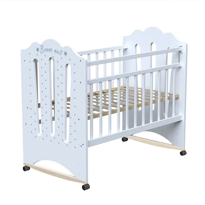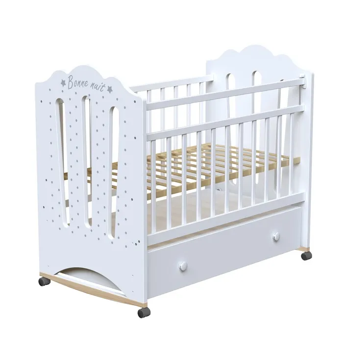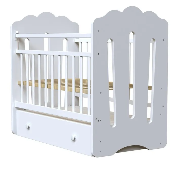 Сон в такой кроватке будет здоровым и безмятежным, а красивые резные аппликации на корпусе будут радовать глаз малыша днем. Оригинальный дизайн кроватки.