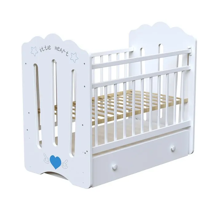 Кровать детская Little Heart, маятник, с ящиком, белая, 1200×600 — Характеристики