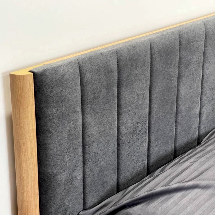 Кровать с подъемным механизмом Адам 1600х2000 дуб крафт золотой/грей алькантара (велюр) – это идеальное решение для вашей спальни. Адам представляет собой сочетание элегантности и функциональности. Эта кровать оборудована удобным подъемным механизмом и выполнена из прочного ЛДСП с мягким изголовьем из приятного на ощупь и практичного в быту материала. Полукруглые МДФ профили в изножье и изголовье обеспечат безопасность и комфорт. Она не только прекрасно выглядит, но и предлагает дополнительное место для хранения благодаря своему подъемному основанию. Для полноты комфорта учитывайте, что матрас и настил следует приобрести отдельно.