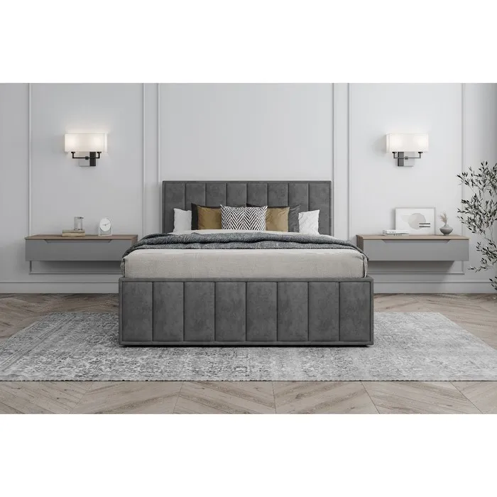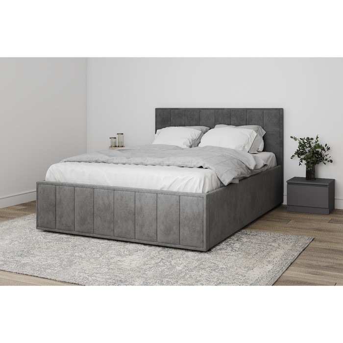 Кровать двуспальная «Лана», с мягким изголовьем, с подъёмным механизмом, 1600×2000 мм, велюр, цвет графит — Характеристики