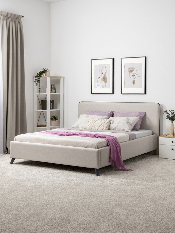 Функциональная и стильная кровать для спальни. Модель «Миа» сочетает лаконичный скандинавский дизайн с практичным подъёмным механизмом для хранения белья. Пастельный оттенок и гладкая текстура ткани обеспечивают эстетичный внешний вид и комфорт при использовании.