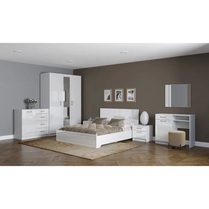 - Элегантный дизайн: Белый цвет и глянцевая поверхность придают кровати легкость и современный вид.