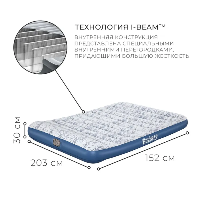 Кровать надувная Bestway Queen, 203×152×30 см, со встроенным электронасосом, 67836 — Характеристики