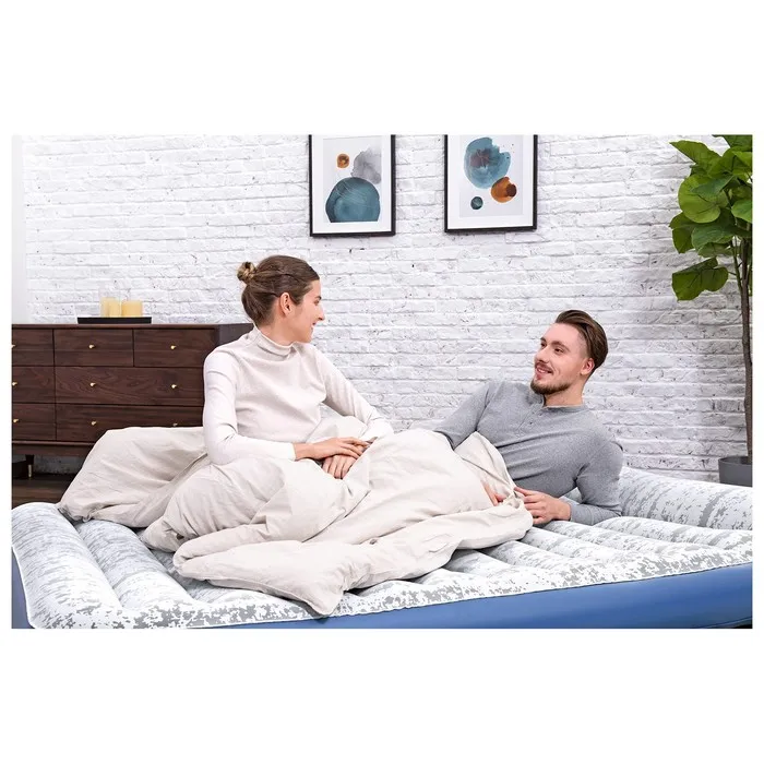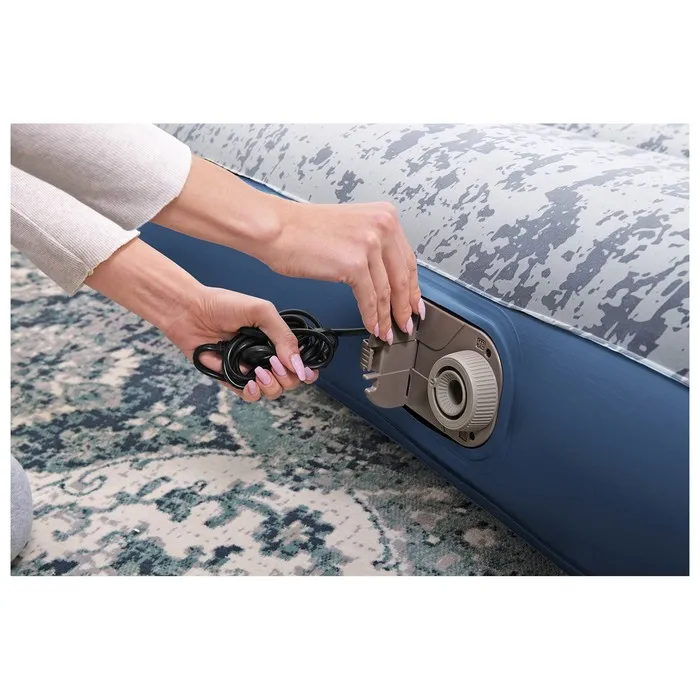 - Модель имеет встроенный электрический насос для быстрого надувания и сдувания кровати.