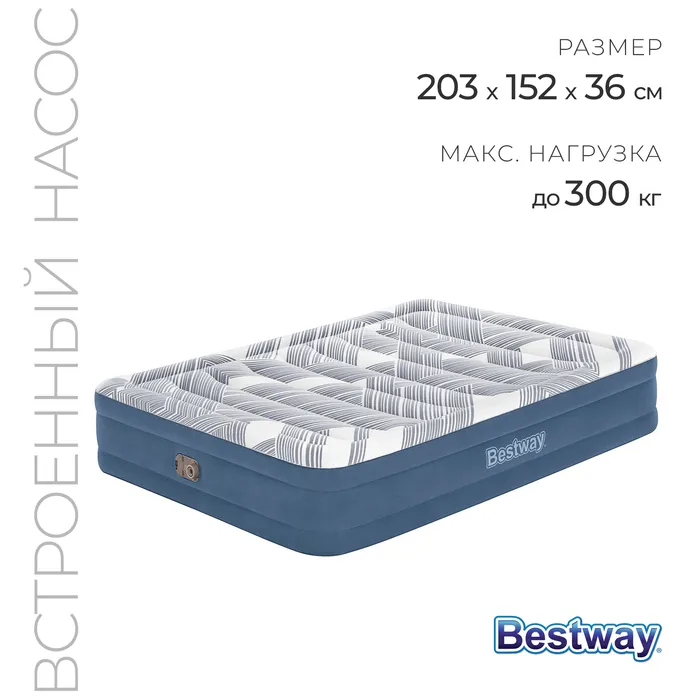 Кровать надувная Bestway Queen 6712Y, 203×152×36 см, со встроенным электронасосом — Характеристики