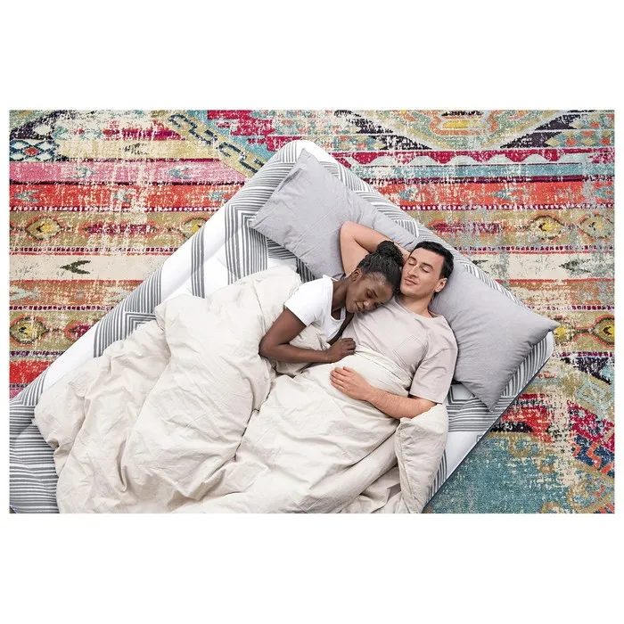 Двуспальная надувная кровать отлично подходит для использования в качестве дополнительных спальных мест. Изделие имеет три слоя и внутренние перегородки, благодаря чему сохраняется первоначальная форма товара и обеспечивается его долгий срок службы. Встроенный электрический насос позволяет быстро и легко приводить кровать в рабочее состояние, а после использования без особых усилий сдувать её. В сложенном виде изделие не занимает много места и комфортно транспортируется.