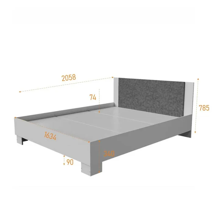 Кровать Nova, 1634×2058×785 мм, цвет спальное место 1600×2000 мм, цвет белый/ бетон — Характеристики