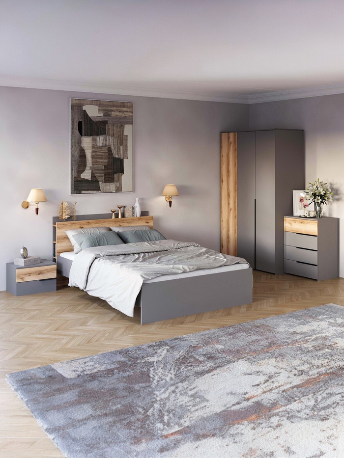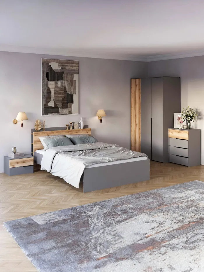 - Универсальный дизайн: сочетание «серый шифер» и «дуб делано» создаёт спокойную и стильную атмосферу, подходящую как для классического, так и для модерн интерьера.