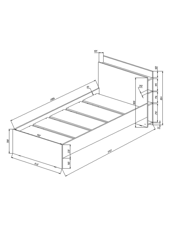 Кровать односпальная «Йорк», спальное место 900×2000 мм, цвет серый шифер/дуб делано — Характеристики
