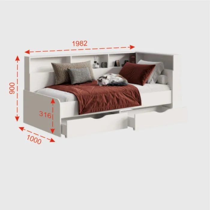 Практичное и стильное решение для подростковой комнаты. С продуманной конструкцией и двумя встроенными ящиками для хранения она обеспечивает комфортный сон и удобство использования.