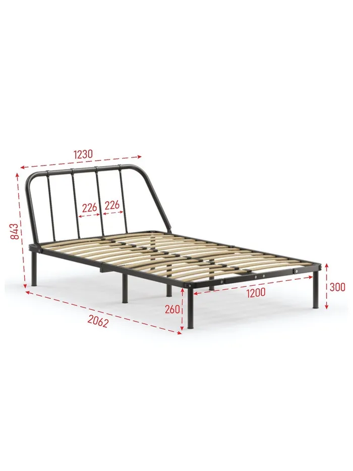 Кровать разборная металлическая «Мира», с спинкой, 1200×2000 мм, цвет чёрный — Характеристики