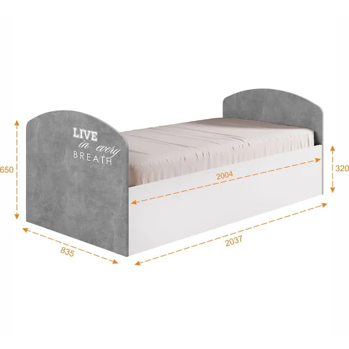Кровать с/м 800х2000 Юниор 2, 840х2030х650, Белый/Бетон светлый — Характеристики