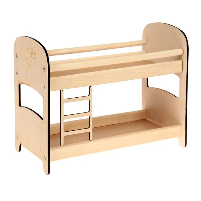 Двухъярусная деревянная кроватка для кукол станет отличным выбором для маленькой хозяйки. Изящный бежевый цвет и классический дизайн делают её универсальной для игр в спальне. Игрушка станет прекрасным подарком на 8 Марта и подойдет для детей от 3 лет.