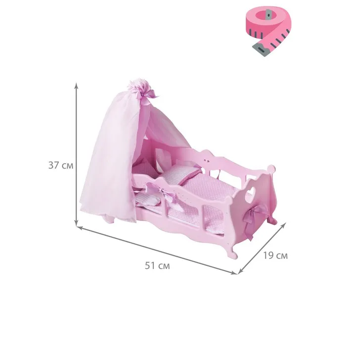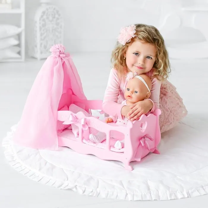 Кроватка для кукол с постельным бельем и балдахином, коллекция «Diamond princess» розовый — Характеристики