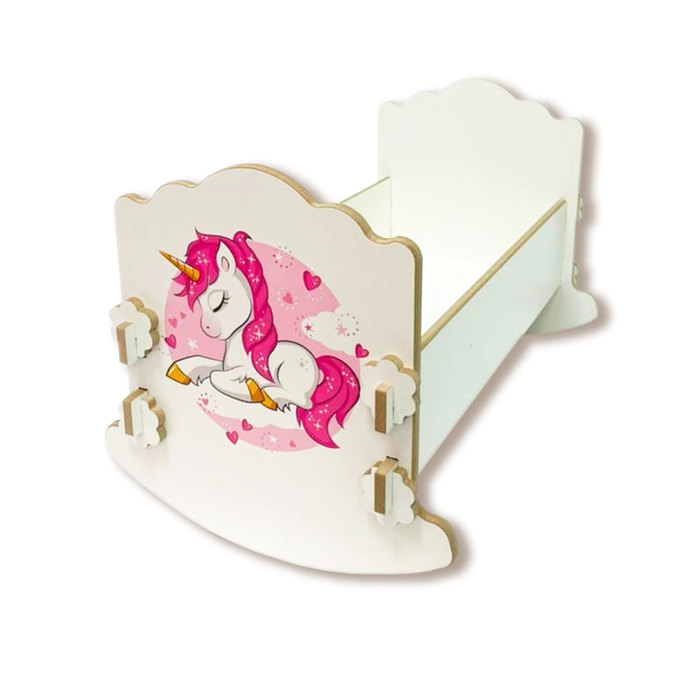 Кроватка-люлька «Единорог» — это настоящее украшение для ваших любимых кукол! Её размер в 43 см позволяет с лёгкостью разместить кукол среднего размера, что делает её универсальной для большинства игровых наборов. Выполненная из прочного дерева, эта люлька станет не только отличным подарком для вашего ребёнка, но и прекрасным украшением игровой комнаты.