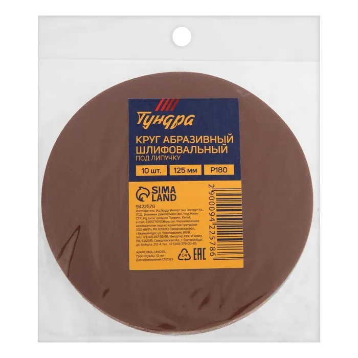 Круг абразивный шлифовальный под «липучку» ТУНДРА, 115 мм, Р100, 10 шт. — Характеристики