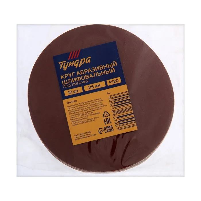 Круг абразивный шлифовальный под «липучку» ТУНДРА, 115 мм, Р120, 10 шт. — Характеристики