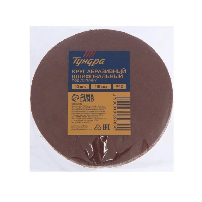 Круг абразивный шлифовальный под «липучку» ТУНДРА, 115 мм, Р40, 10 шт. — Характеристики